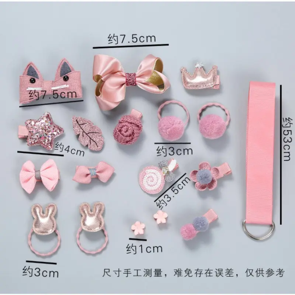 Gift box containing an assortment of hairclips, and rubberbands. Pack includes one hairclip hanger organiser as well .The perfect gift for little fashionistas