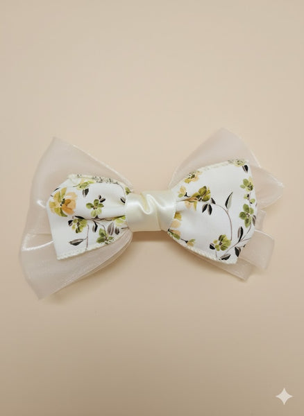 Add a touch of vintage romance to any hairstyle with The Secret Garden Bow Clip. Crafted from delicate sheer fabric layered over a beautiful dark floral print, this bow features soft, dusky pink and peach blossoms. The deep, rich color makes it a sophisticated accessory perfect for dressing up an outfit or adding subtle elegance to everyday wear. Its secure clip ensures it stays perfectly in place.