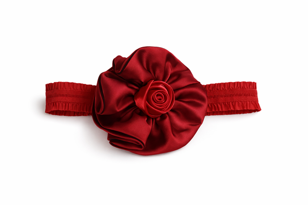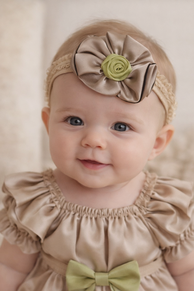 Fascinator large satin flower with rose baby headband
